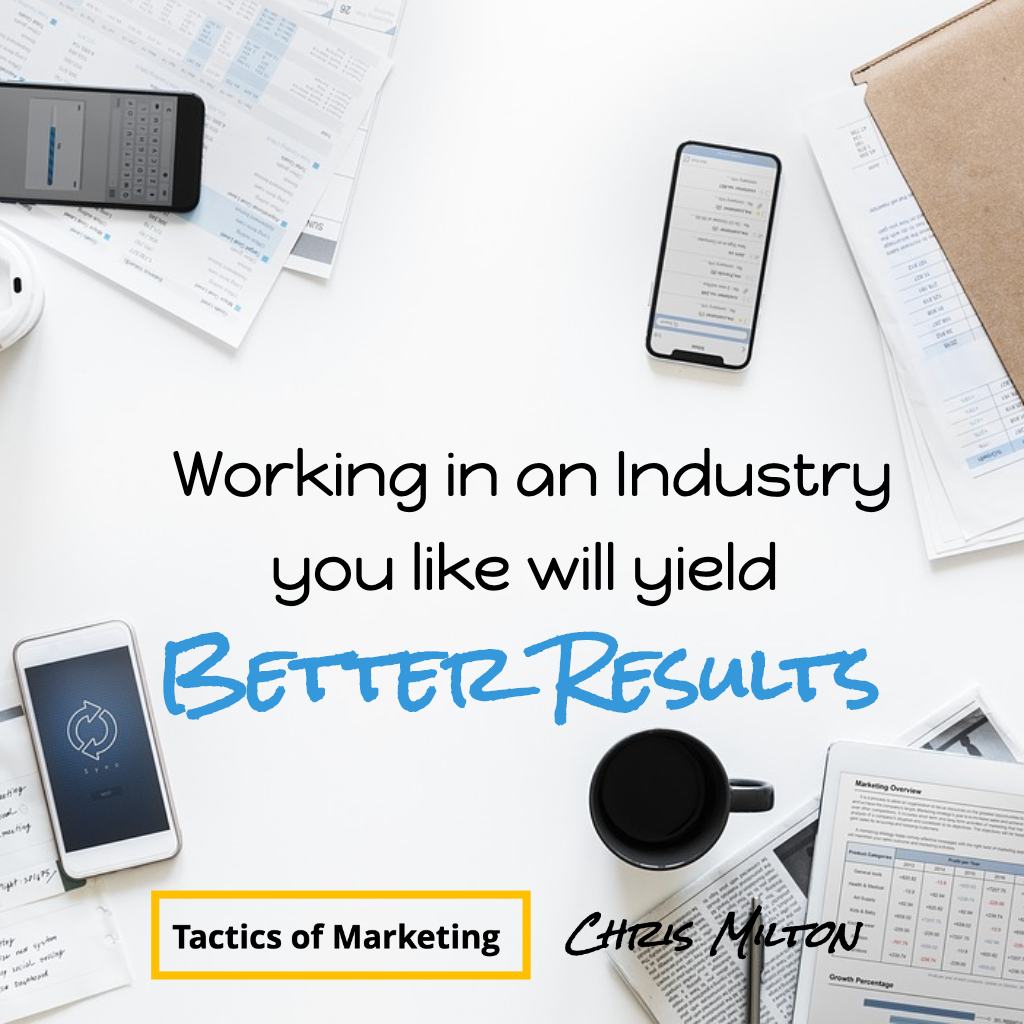 I remember hearing from a lot of teachers, “You study harder if you like the topic.” The same is true here. Working in an industry that you like will yield better results. You’ll be happier and will see opportunities that others without your enthusiasm will miss.  Look back at my background, something always led back to sports.  Finding your niche can be as simple as following this formula I picked up from Mariah Coz: